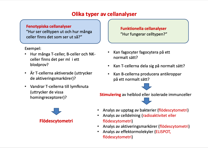 Analys av fenotyp och funktion hos immunceller används ffa för att: