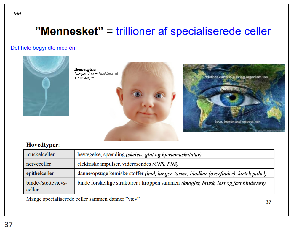 En celle –> levende organisme.