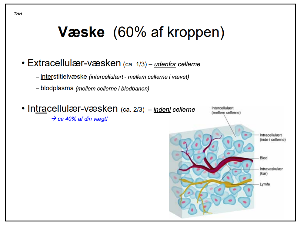 Ekstracellulær væske –> ligger udenfor cellerne (1/3 af væsken)