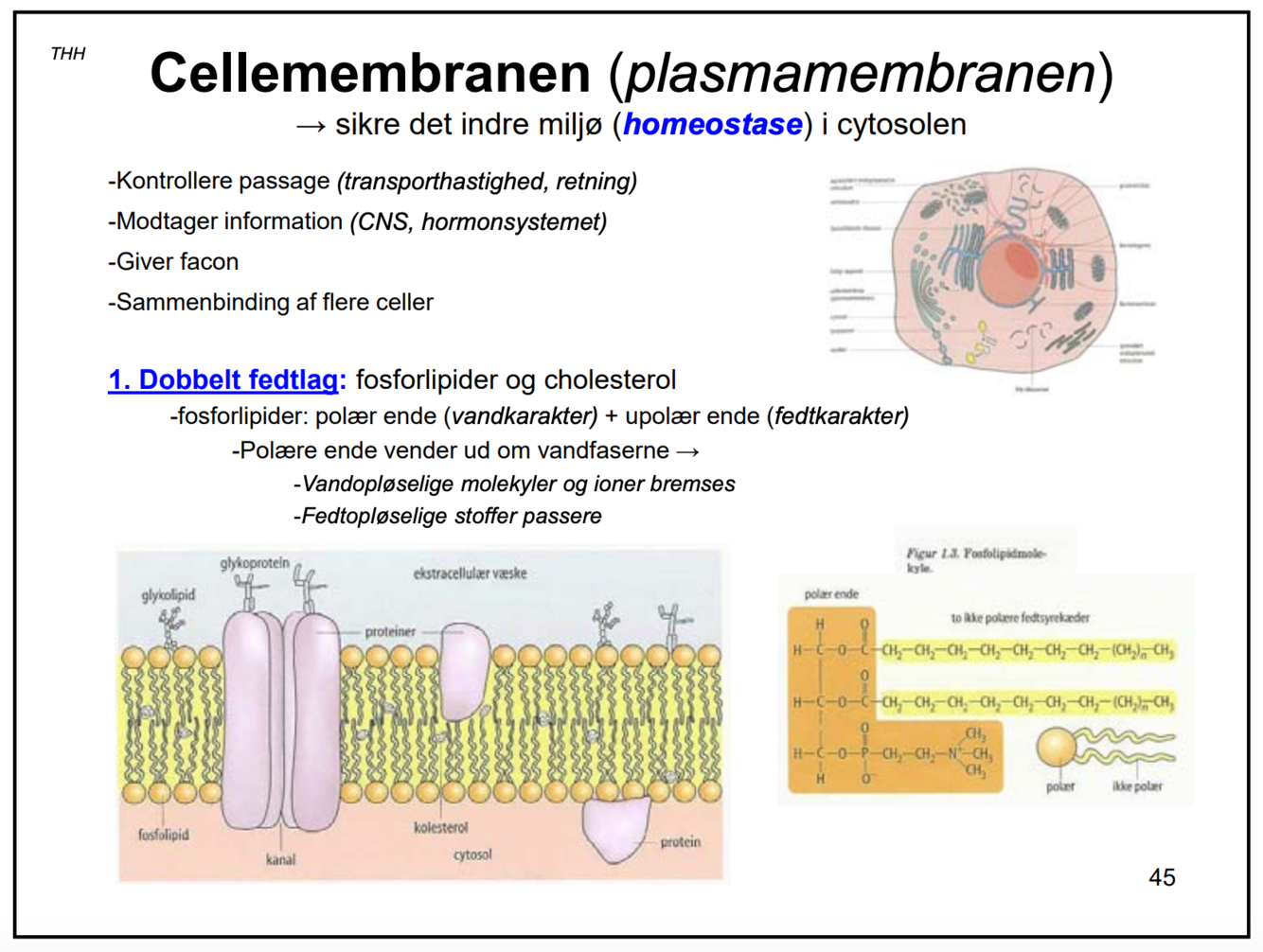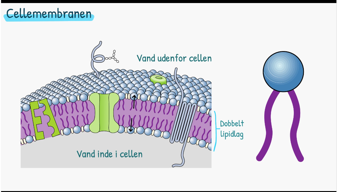 Den øvre hydrofile del af cellen sørger for at der ikke trænger væske ind i cellemembranens fedtede del - altså det hydrofobe del