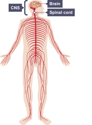 The nervous system sends messages around our body. This means that our brain can control things like movement and breathing.