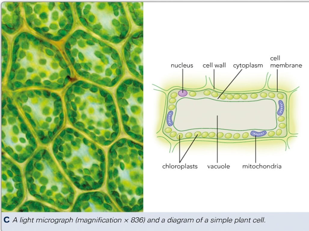 Only found in plant cells. They contain chlorophyll that absorbs light energy for photosynthesis.