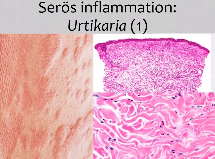 När ses ofta en serös (transudat/proteinfattig) vätska i vävnad vid inflammation?