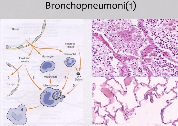 När bronkopneumoni läker, avfallsprodukter hostas upp resorption vätska ger utläkta alveoler