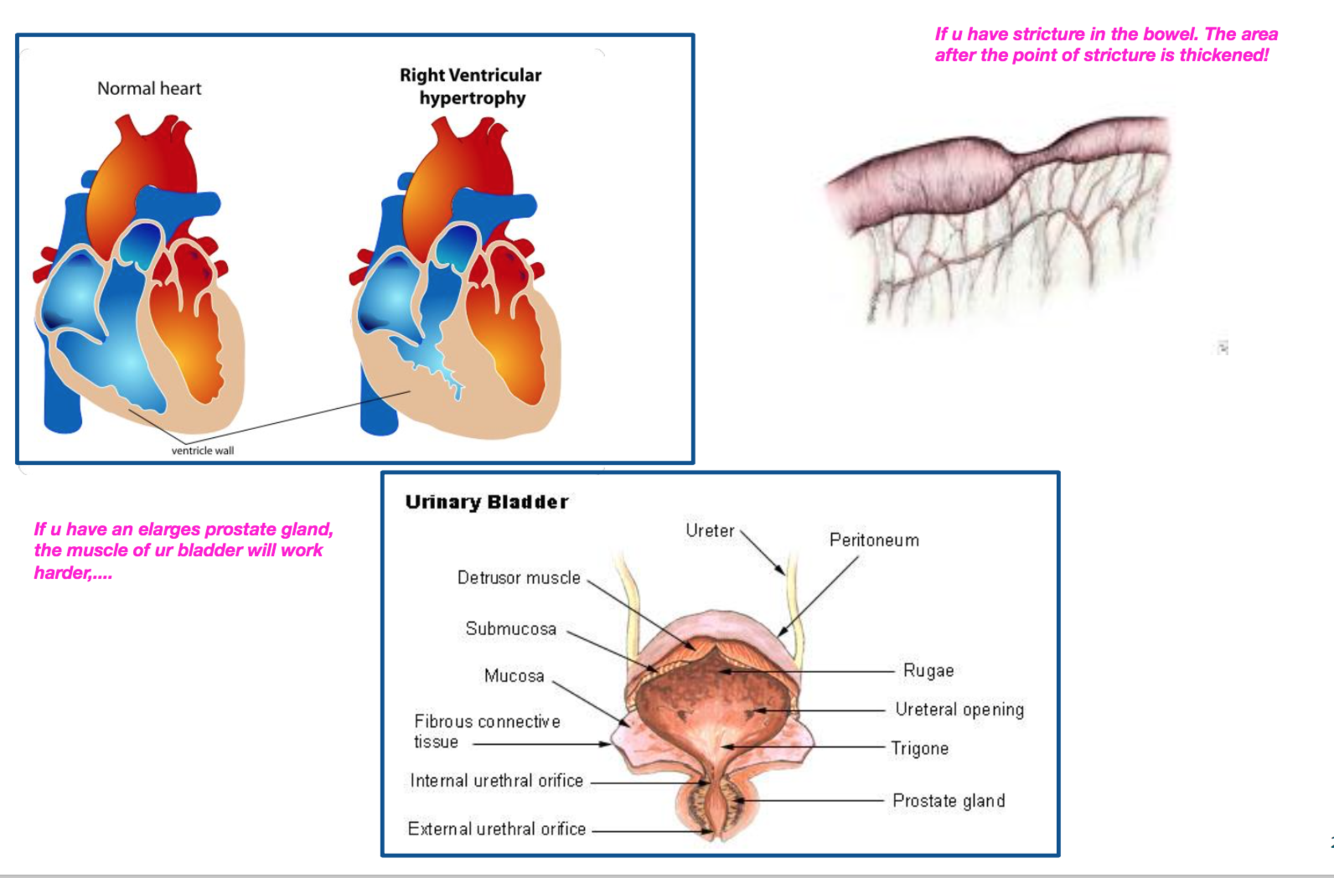 What examples are there of pathological hypertrophy? (3)