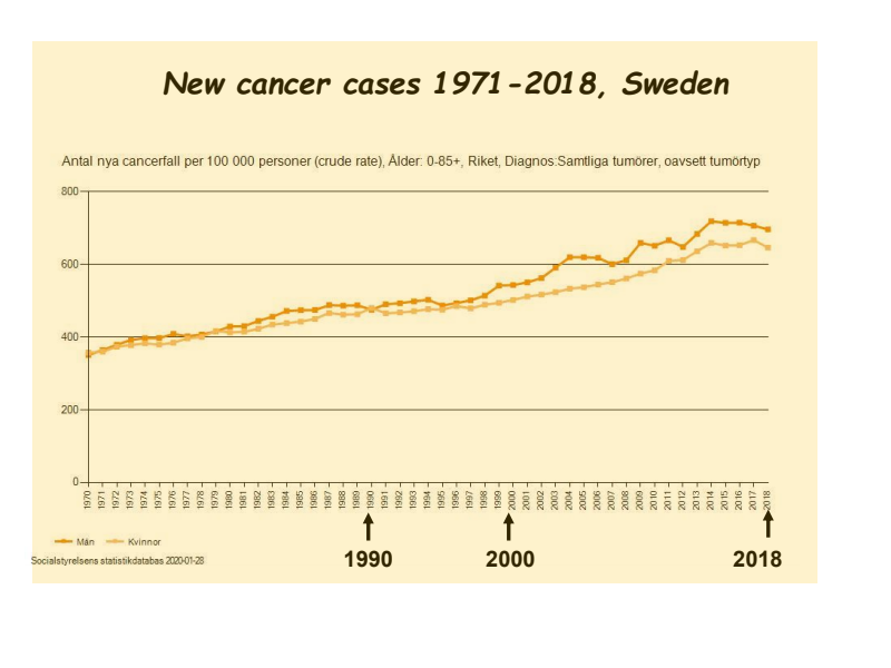 Det uppkommer omkring 70 000 nya cancerfall per år.