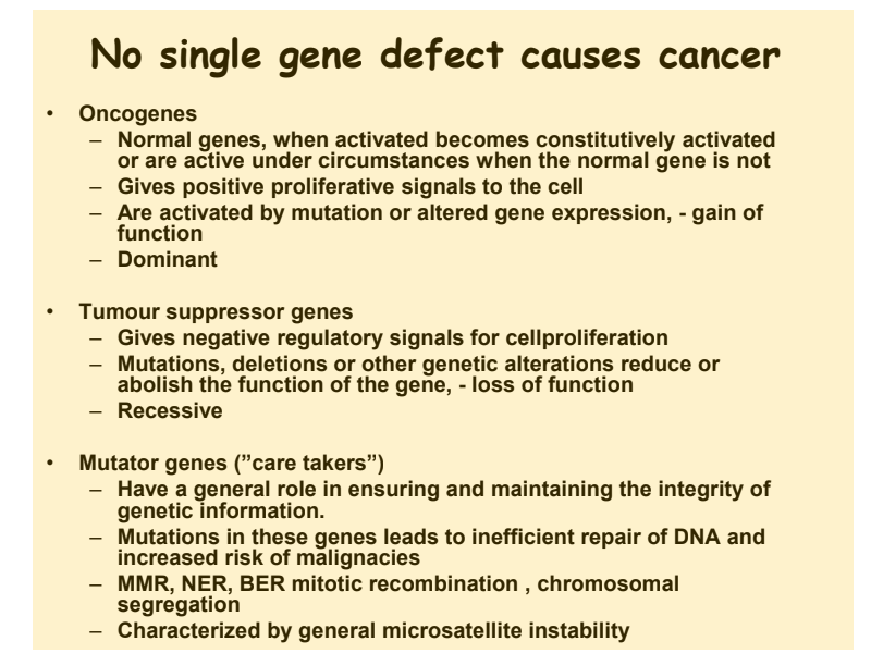 Vid en otillräcklig funktion hos dessa gener så ökar risken för mutationer i onk- och tumörsuppressorgener.