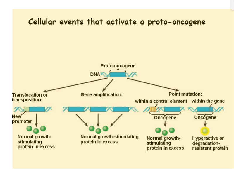 Förklara de olika cellulära händelserna som aktiverar en proto-onkgen.