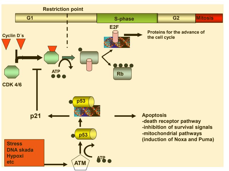 Detta är en känslig punkt, eftersom en initierad replikation kommer att fullföljas. Ifall cellen i detta läge skulle lida av cellstress, DNA-skada eller hypoxi så kommer det att leda till en fosforylering av ATM som i sin tur fosforylerar p53.