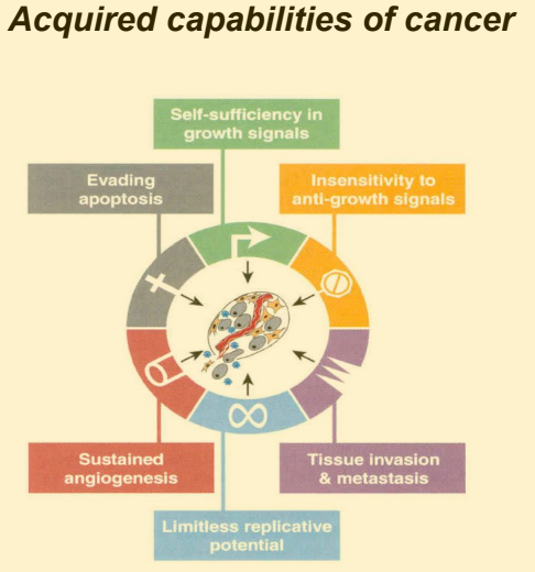 Normala gener som är inblandade i celltillväxt och proliferation, eller inhibition av apoptos.