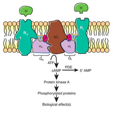 G-alphaS (Gas)= Stimulatory/Activation of Adenylyl cyclase, increasing cAMP, activates pKa–> phosphoylated proteins–>Cell Growth/Motility