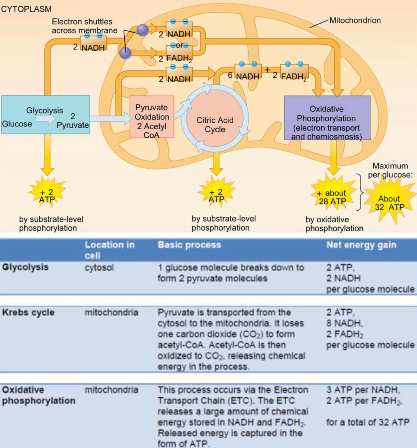 - glucose -> ATP