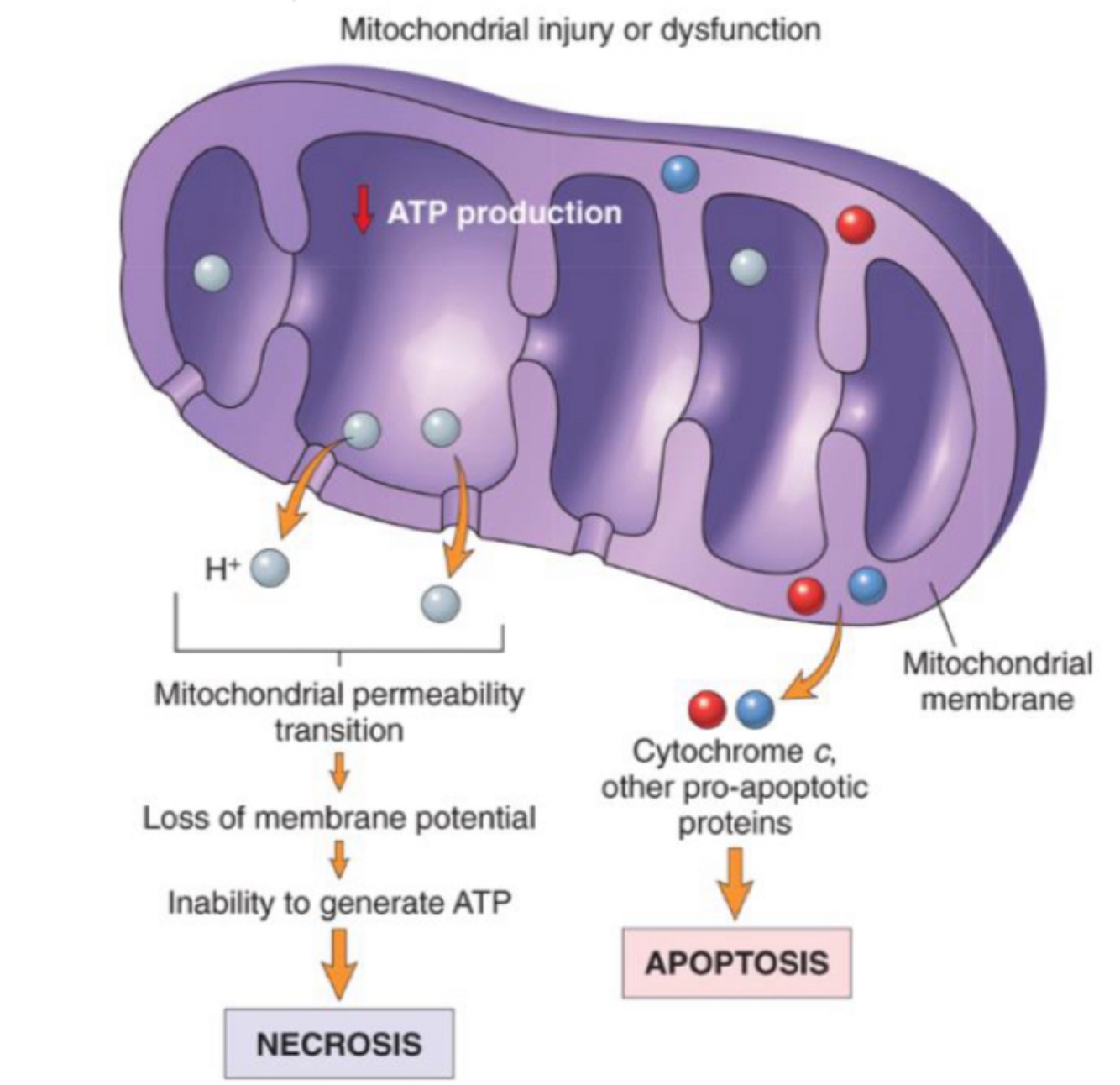 2) mitochondrial damage