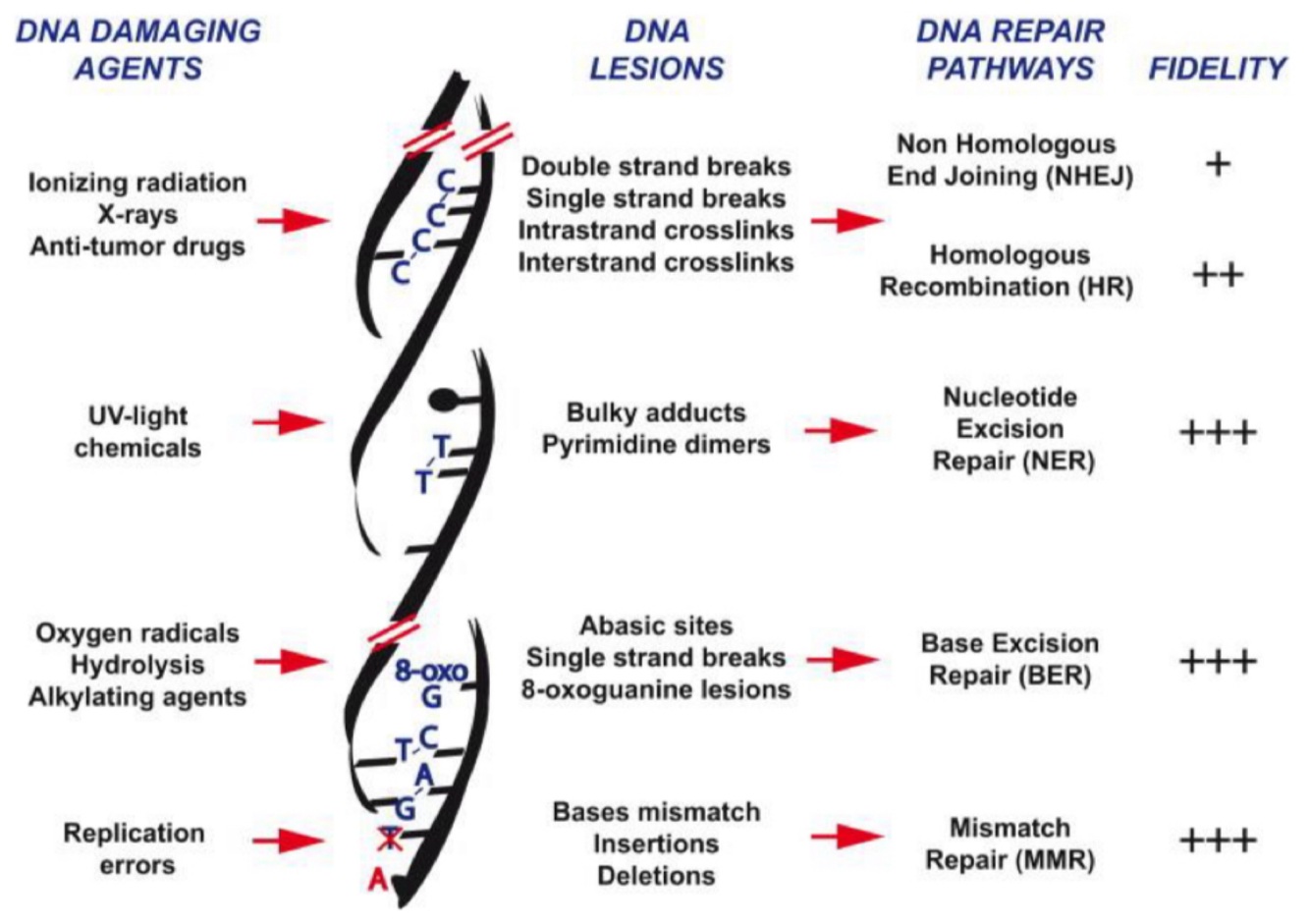 DNA repair mechanisms exist but may not be enough to repair damage or may induce further mutations