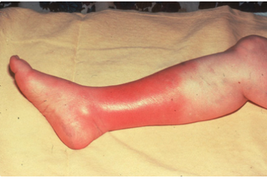 This is infection and inflammation of the soft tissue, leading to generalised swelling