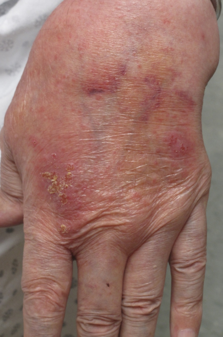 happens up to 30% in pts due to skin barrier breakdown or lymphatic stasis.
