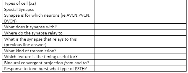 Fill in the graph as it relates to Bushy Cells