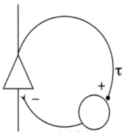 The circle is the interneuron and the principle is the triangle. When that auditory nerve excites the interneuron, it causes the principal neuron to be inhibited. Therefore this is a mechanism to produce an onset response since the principal neuron will now stop firing after said onset response