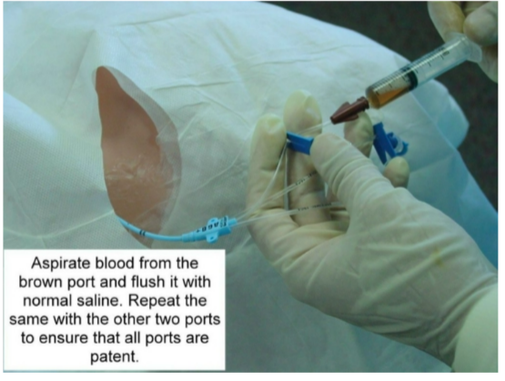After inserting the triple lumen cordis