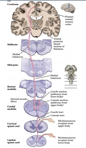 Go to thalamus > terminate in ventral posterolateral nucleus