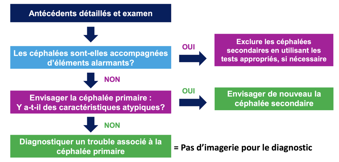 si le Px répond oui a au moins 2 de ces 3 question, il peut etre atteint de migraine en l’absence d’éléments l’indiquant :