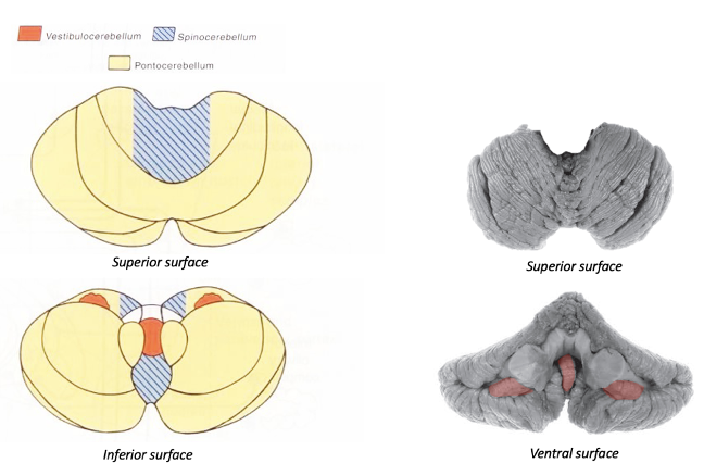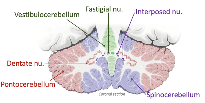 Which of the central nuclei are associated with the different functional lobes of the cerebellum?