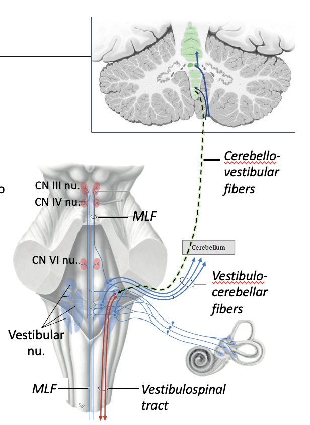 Describe the afferent and efferent pathways to the vestibulocerebellum