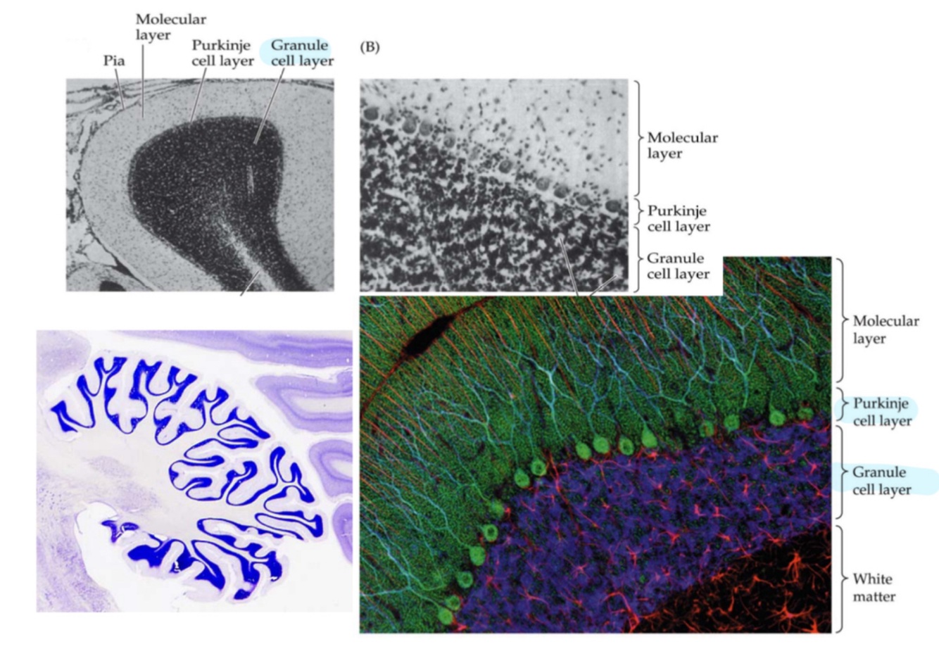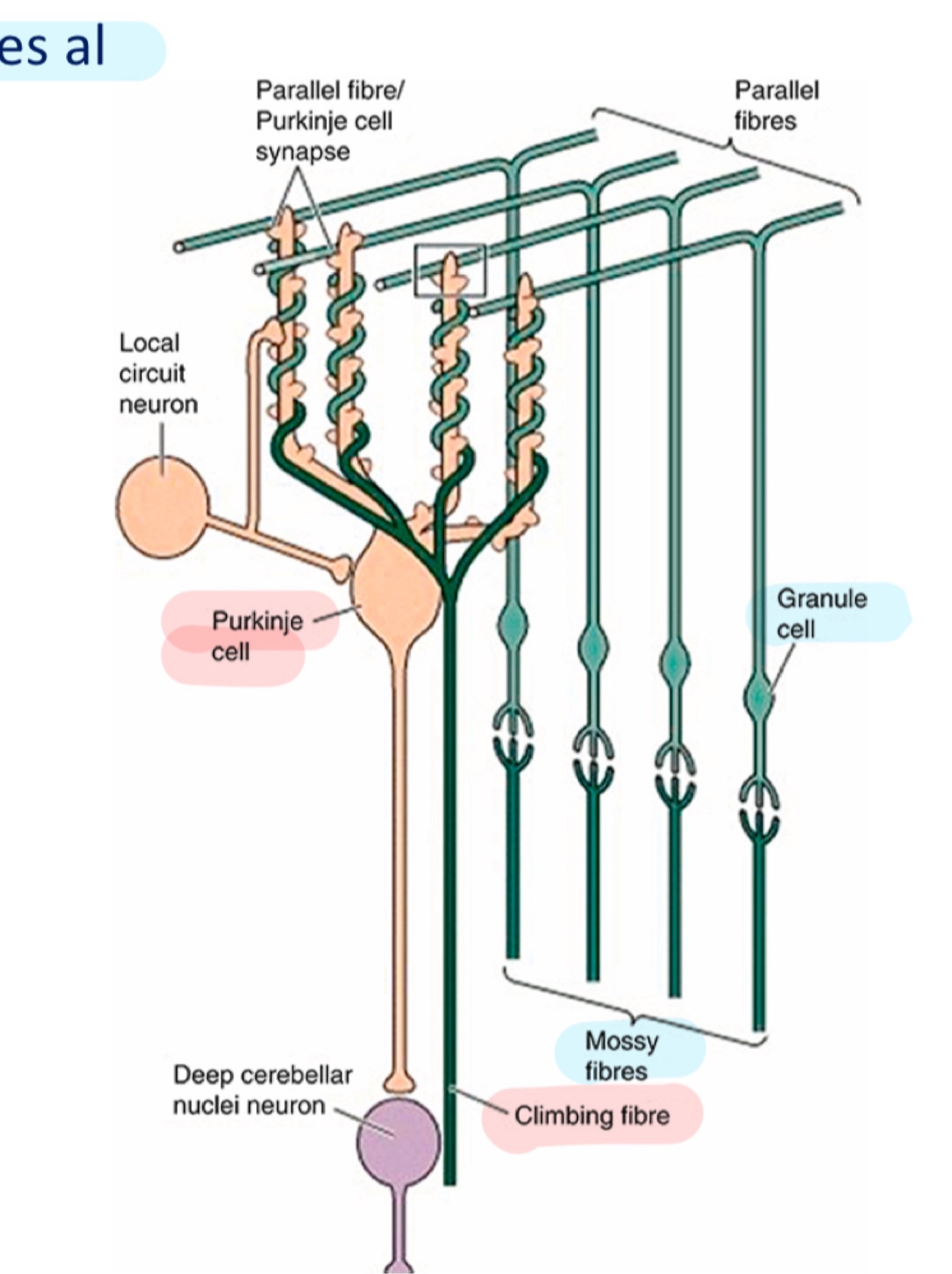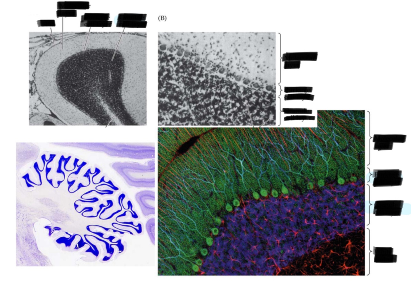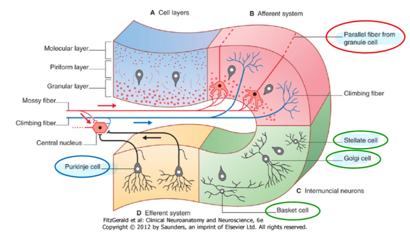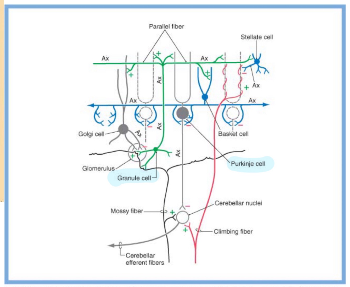 Tipos de células y relaciones sinápticas en la corteza cerebelosa