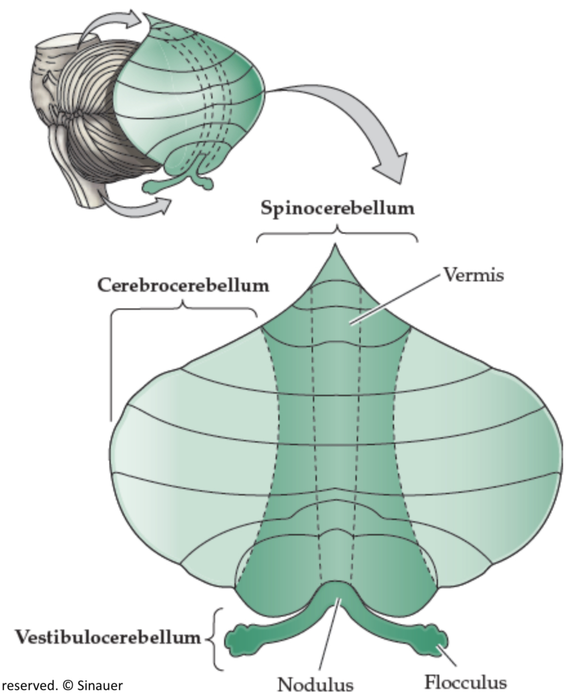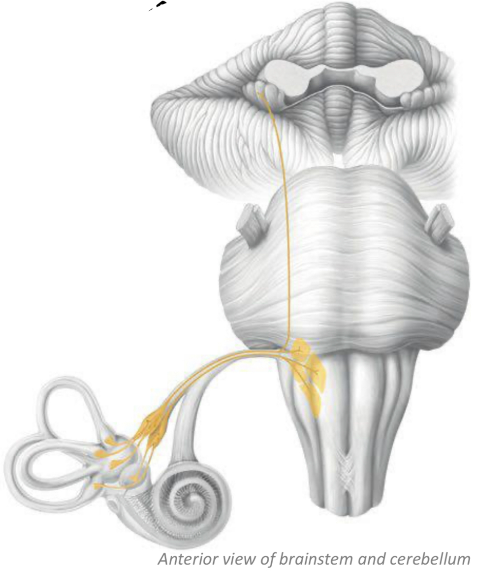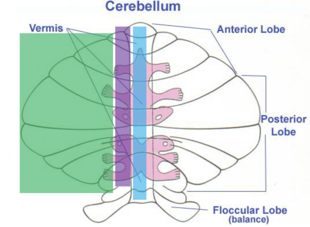 It receives ipsilateral information about balance from the vestibular apparatus & nuclei in the inner ear