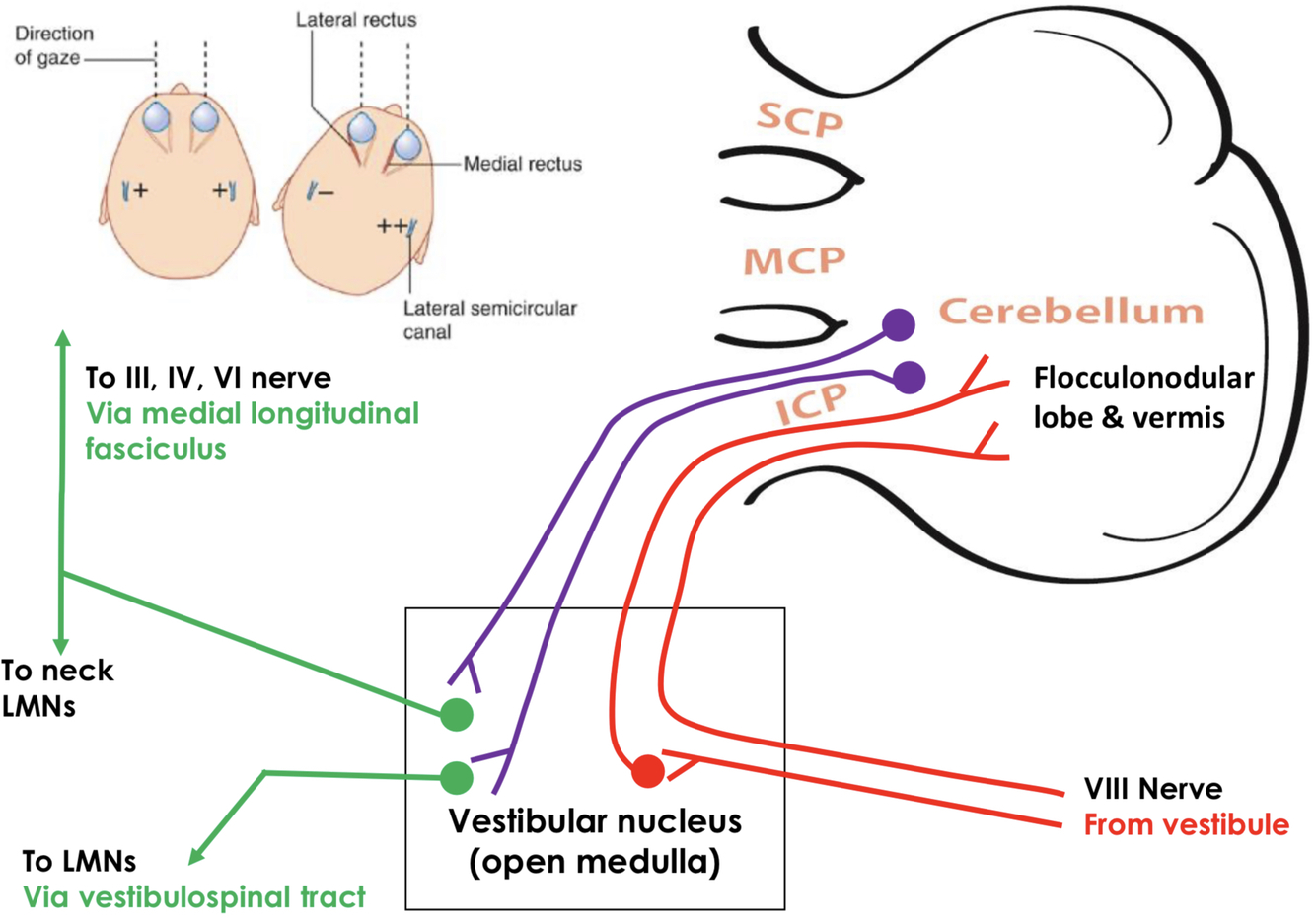 It coordinates muscles involved in maintaining balance and constancy of visual fields