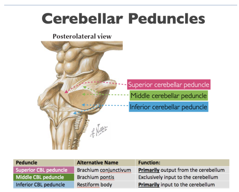 INferior CBL peduncle: Primarily INPUT to the cerebellum