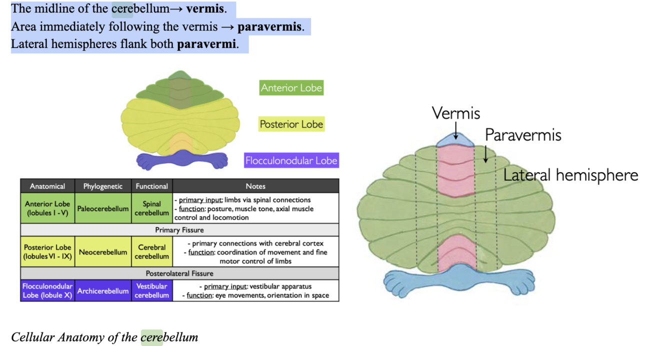 Area immediately following the vermis → paravermis.