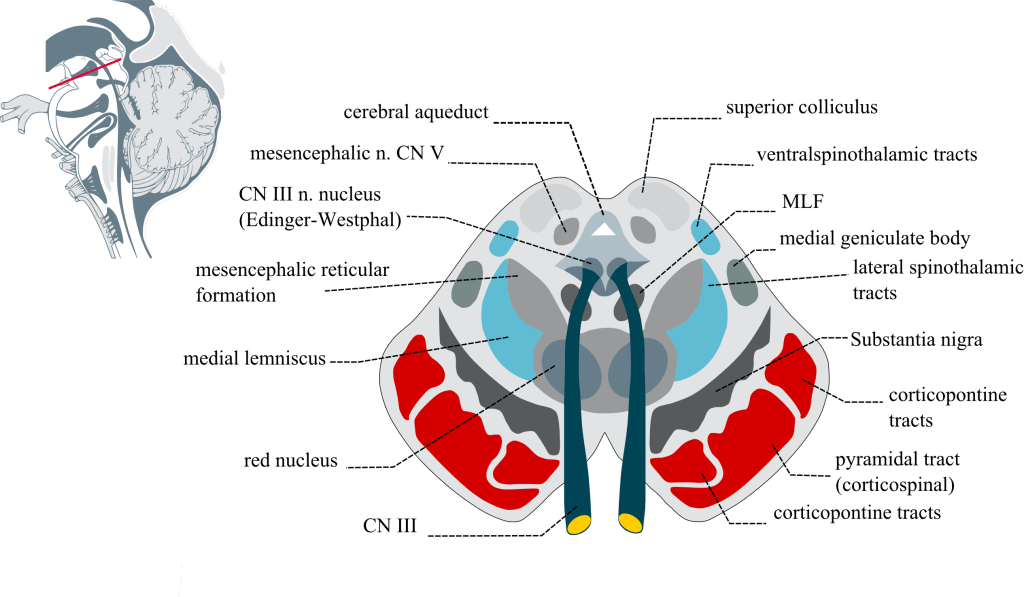 Corticobulbar fibers in crura cerebri are located medial to the corticospinal fibers