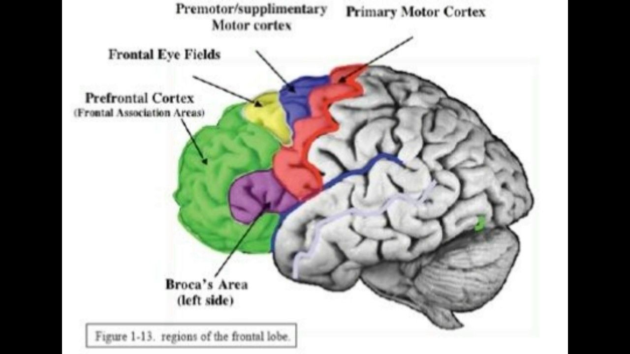 Correct statements about the frontal lobe include :