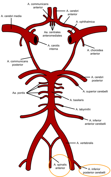 Själva blodförsörjningen kan grovs delas upp i en Bakre och en Främre del. Dessa kommer sedan mötas upp vid toppen.