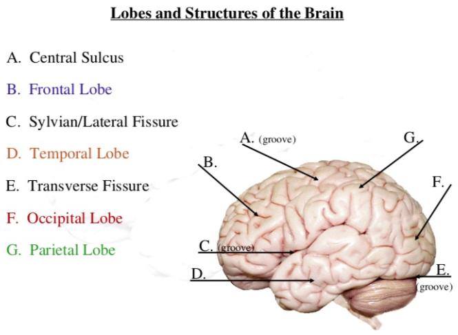 What are the functions of the frontal lobe, the parietal lobe, the occipital lobe and the temporal lobe?