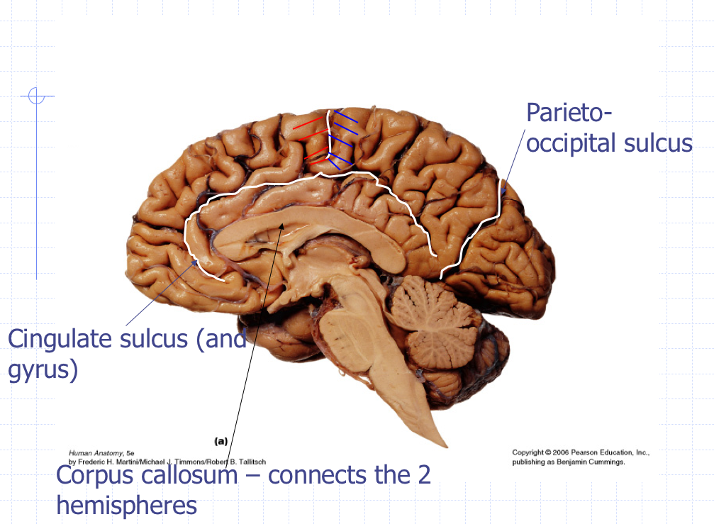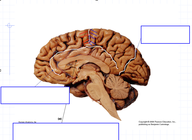 Medial portions of cerebral hemispheres: Limbic system (storage and retrieval of processed information)