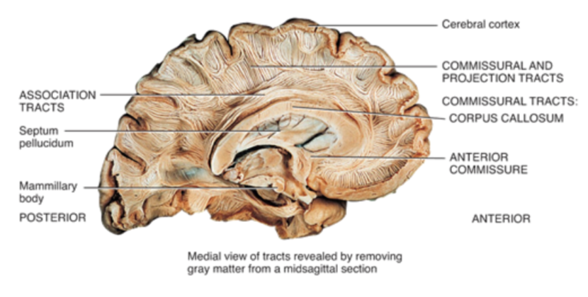 Medial view of tracts revealed by removing grey matter from a midsaggital section