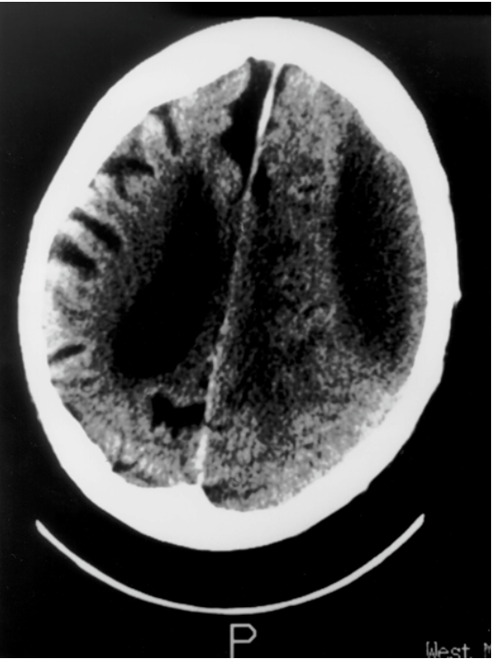 High pressure on brain and brainstem = affects reticular activating system = affects many consequent systems (circadian, breathing etc.)