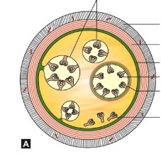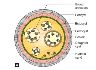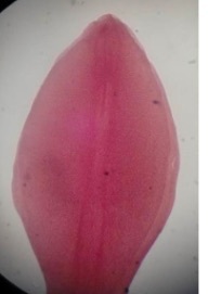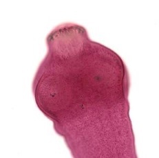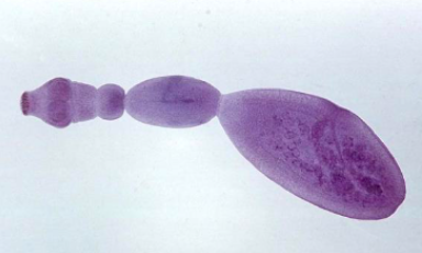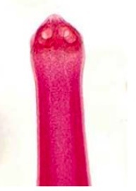 Echinococcus Granulises - note thick neck (differentiates it from T.Solium), double row hooks