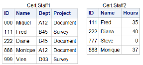Suppose you merge data sets Cert.Set1 and Cert.Set2 below: