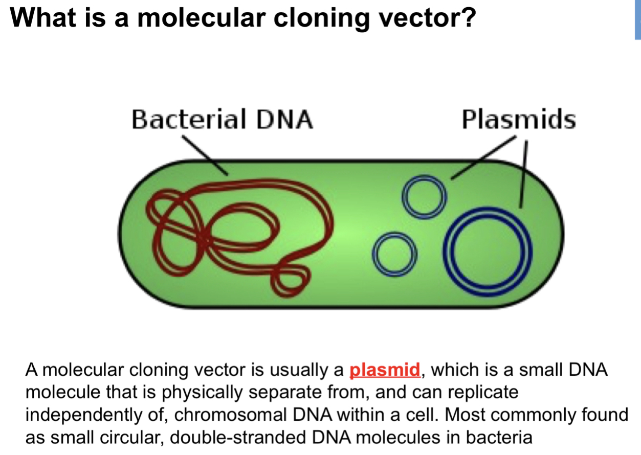 A small DNA molecule that is physically separate from, and can replicate independently of, chromosomal DNA within a cell. Most commonly found as small, circular, double-stranded DNA molecules in bacteria.