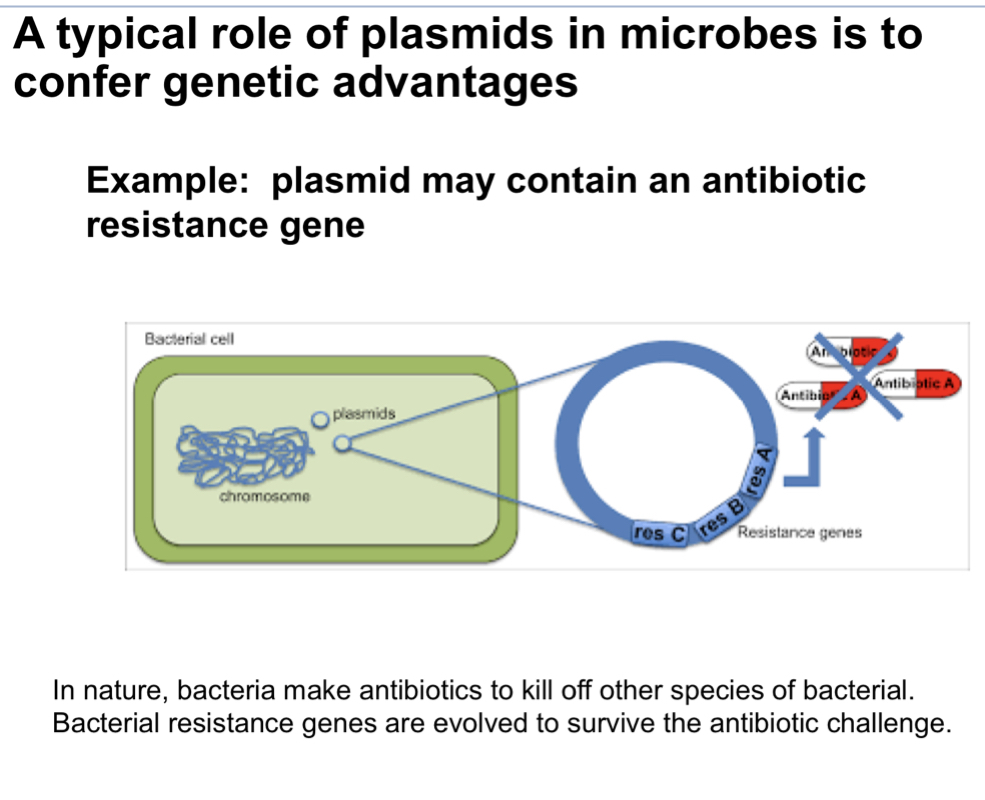 There is an advantage to being able to transfer beneficial genes (like abx resistance) to bacteria that are close kin. This is called horizontal gene transfer.
