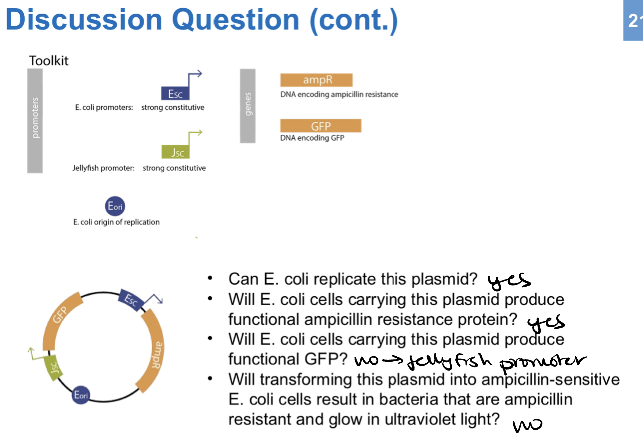 Note: sometimes a jellyfish promoter will work in an ecoli, but usually something form another species implies that it won’t work.