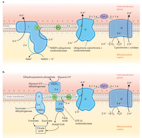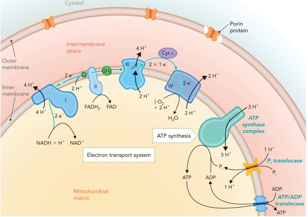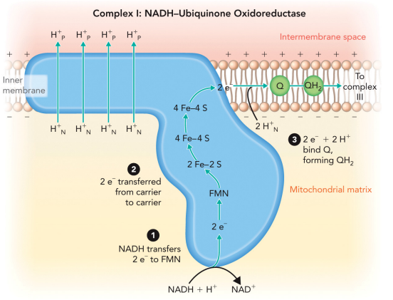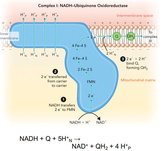 2 NADH + 2 H+ + 5 ADP + 5 Pi + O2 –> 2 NAD+ + 5 ATP + 2 H2O