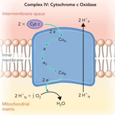 2 cytochrome c (red) + 4 HN+ + ½ O2 → 2 cytochrome c (ox) + 2HP+ + H2O