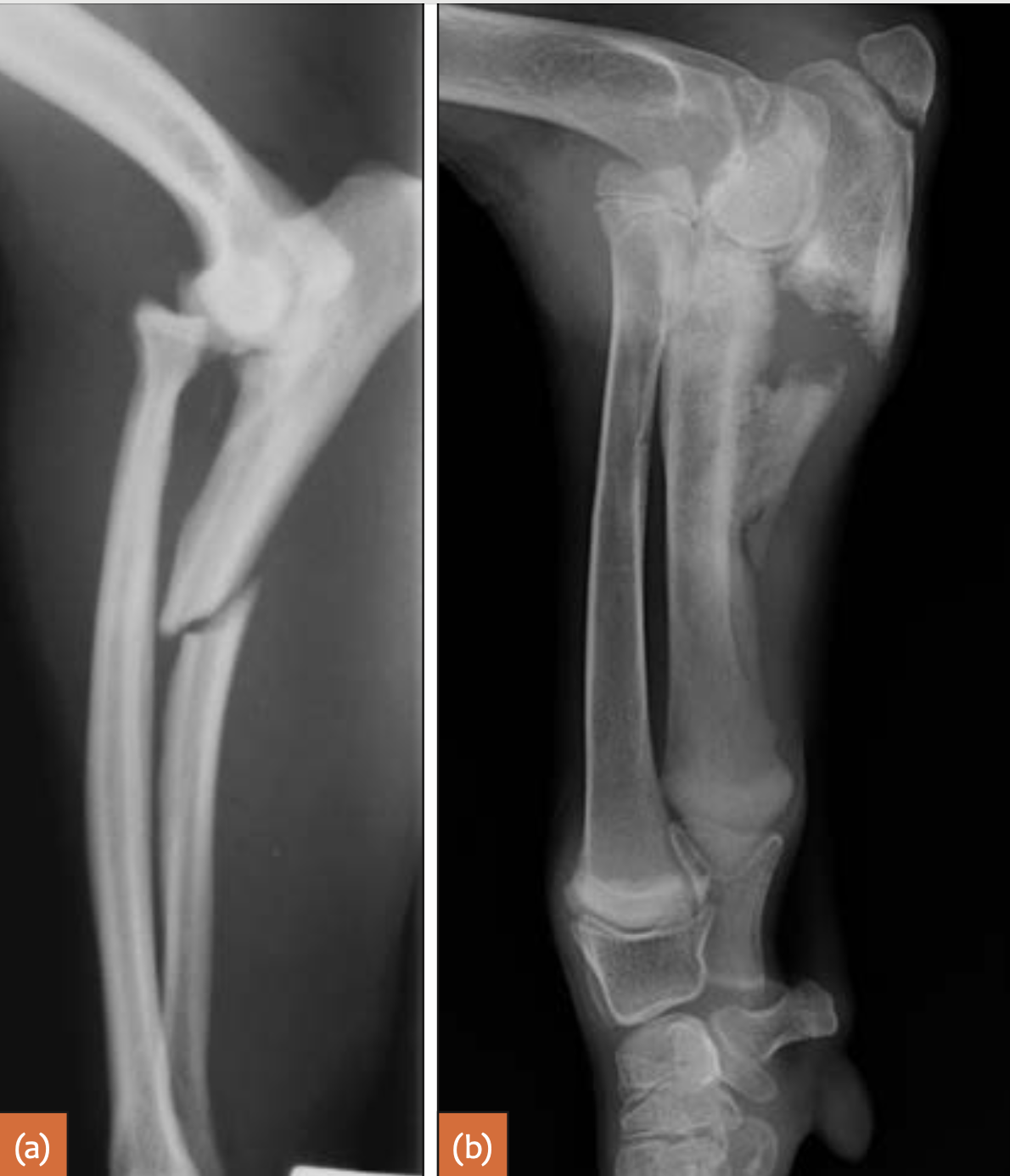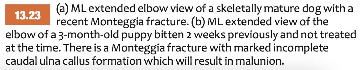 Proximal ulnar fracture (articular or non-articular) accompanied by a cranial luxation of the proximal radius and distal ulnar fragment