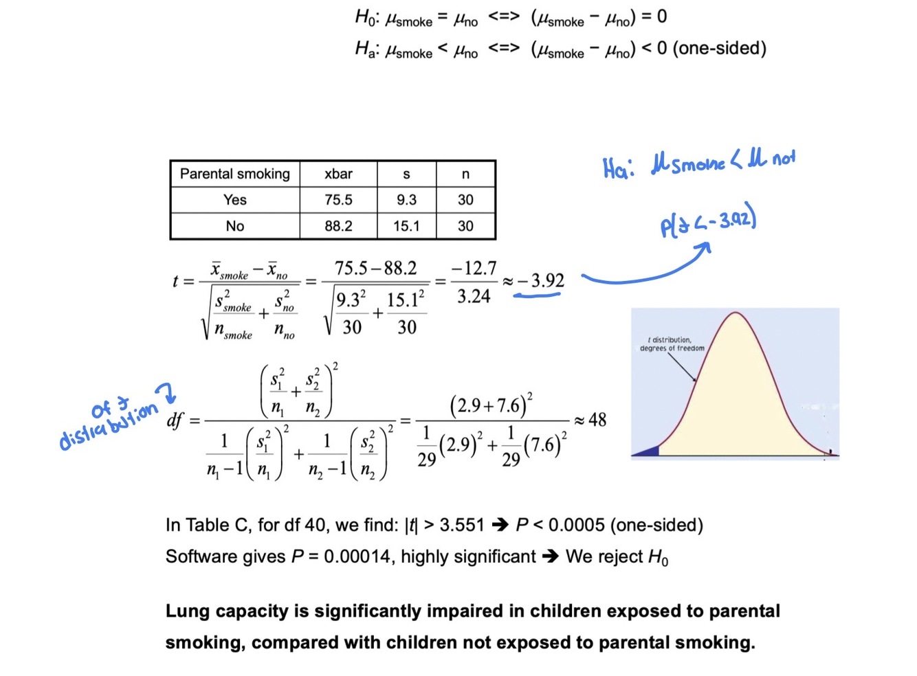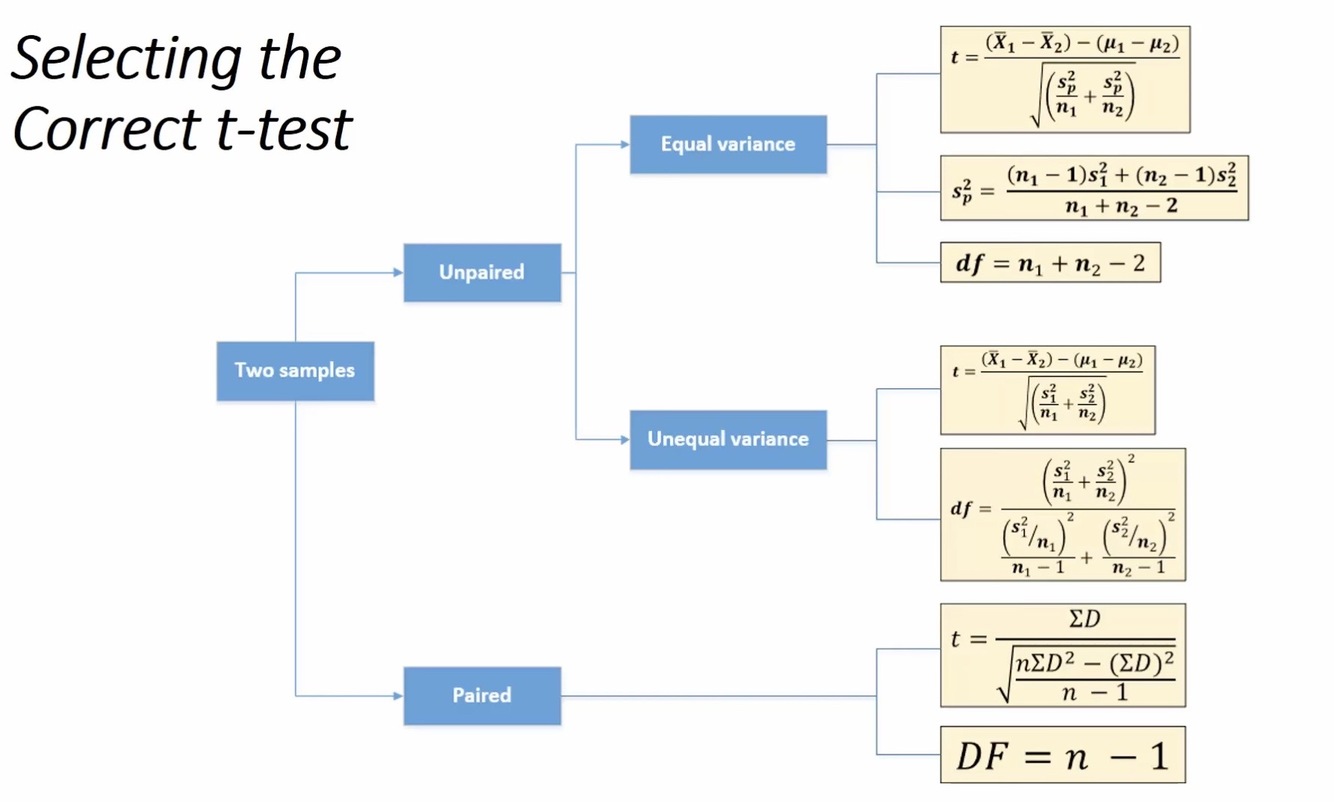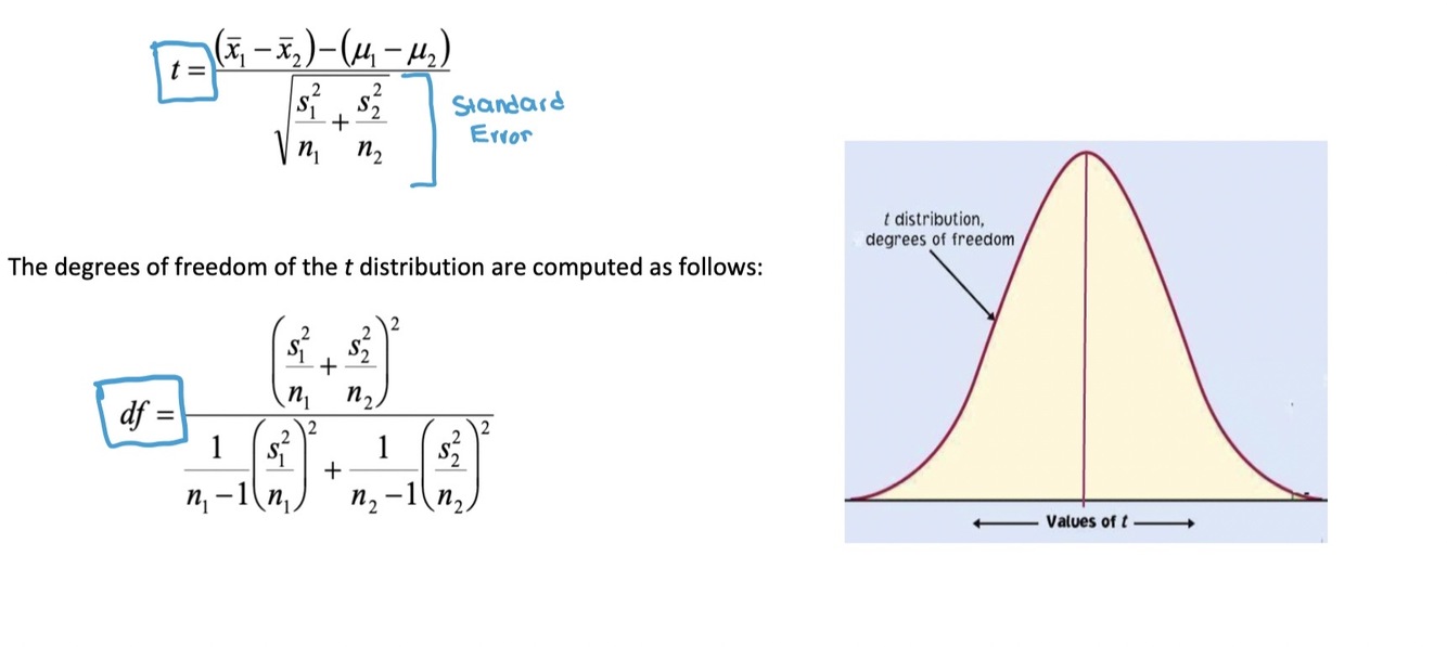 one assuming equal variance (“pooled”) and one not assuming equal variance for the two populations. They have slightly different formulas and df.
