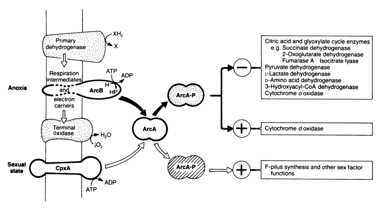 What two-component systems regulate the genes that respond to anaerobiosis?