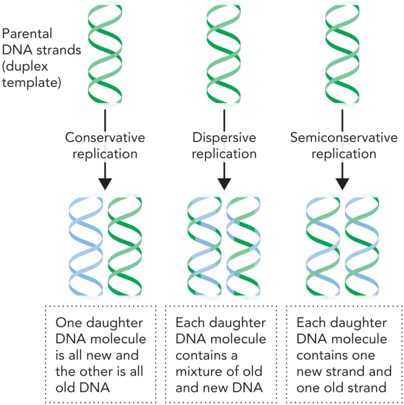 What are the 3 proposed hypotheses for DNA replication? Which one is correct?